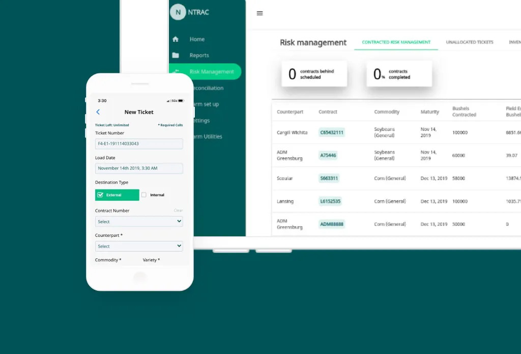 NTRAC is a risk management app developed to help farmers manage their harvest and increase visibility into the agricultural marketplace. NTRAC’s digital ticketing system improves efficiency at the point of production: reducing errors, streamlining counterparty reconciliation, improving auditability, and shortening the time between harvest and payment. See All Features >